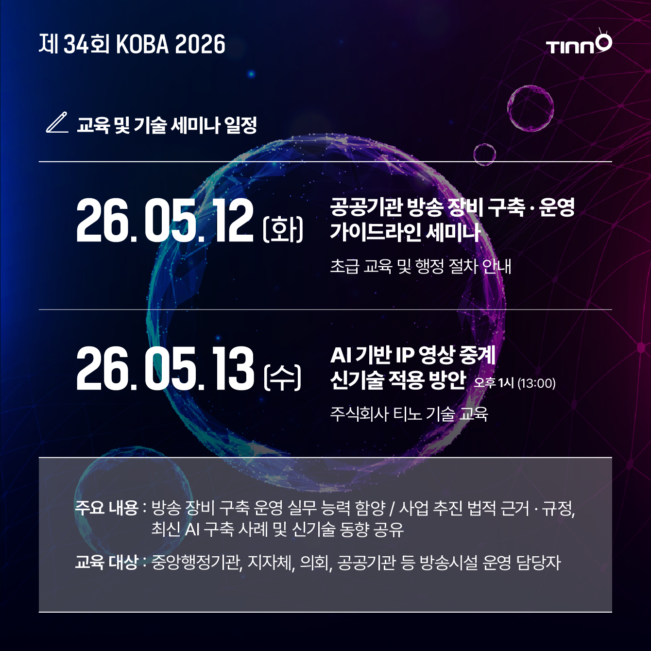 제 34회 KOBA 2026, 티노 AI 융복합 중계 시스템 방송 세미나