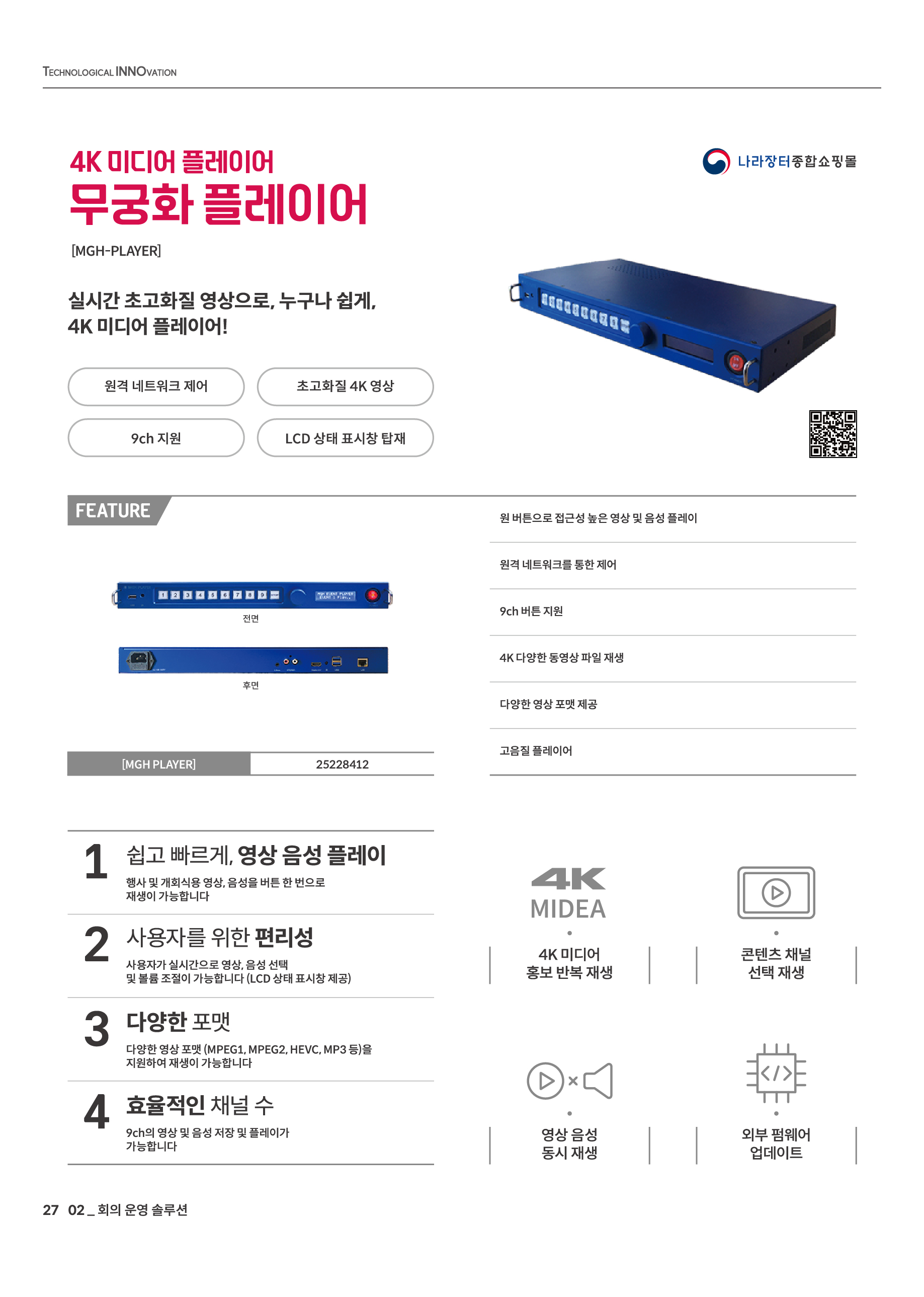 #원격 네트워크 제어 #4K 초고화질 영상 #9ch 지원 #LCD 상태 표시창 탑재