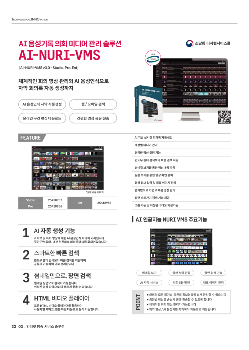 #AI 음성 인식 #웹 및 모바일 검색 # 간편한 영상 공유 · 전송 #다수 사용자별 관리 #영상 컷팅 및 편집